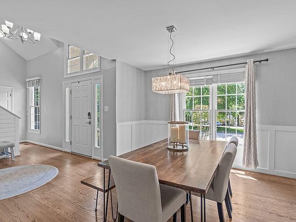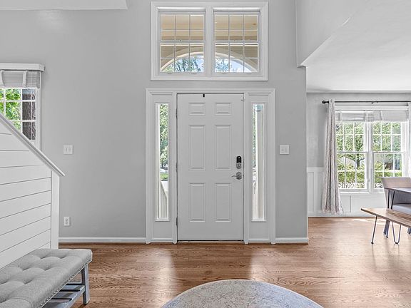 Step through the arched entry into a bright, airy, and beautifully maintained home that blends timeless charm with modern comfort. Natural hardwood floors, custom wainscoting, decorative trim, and a neutral palette create an elegant first impression. Just off the foyer, a formal dining room offers the perfect space for entertaining and flows seamlessly into the open-concept living area. The grand two-story family room stuns with soaring windows, a cozy gas fireplace, and a partially open staircase that adds architectural interest. The spacious kitchen is equally impressive, featuring granite countertops, ceiling-height cabinetry, a pantry, pendant lighting, breakfast bar, and direct access to the dining room, ideal for everyday living and hosting alike. Downstairs also includes a flexible bonus room that works beautifully as a home office, gym, or bar area, along with a guest bath and laundry room for added convenience. Upstairs, the primary suite is a true retreat with vaulted ceilings, board and batten detailing, a walk-in closet, and a sliding barn door leading to a luxurious ensuite with a frameless glass shower and dual vanities. Two additional bedrooms and a shared full bath complete the upper level. Enjoy peaceful outdoor living under mature trees with both open and covered spaces in the fully fenced backyard, perfect for relaxing or entertaining. Located just 2 miles from US-64 and minutes to Wegmans, Costco, and the vibrant downtowns of Cary and Apex, this home offers the perfect blend of style, comfort, and location.