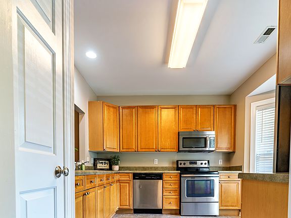 End-Unit Townhome, Two Master Bedrooms. Lovely Kitchen with 42-inch raised panel Maple Cabinets with pewter pulls, lazy susan, pantry, microwave, dishwasher and pass through to dining room. First floor has Pergo flooring in living areas. Two master bedrooms, each with walk in closet and master bath. Bathrooms have new granite and quartz tops. Huge family room with ceiling fan, fireplace with custom mantle. New carpet installed upstairs. 3 parking spots in front of unit. 12 month lease. No smoking. Utilities not included. 3 parking spaces in front of unit. No pets