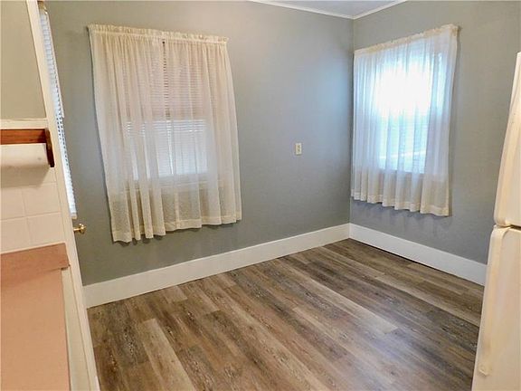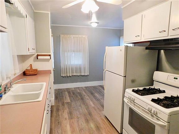 Brand new flooring and fresh paint on this perfect rental or starter home close to Buhl Park and Sharon Schools, as well as local restaurants and stores; private corner lot in a great neighborhood, living room, dining room, 2 bedrooms as well as full bath; Lovely 7 X 12 sunroom and full basement which has second bath and nice storage; 90 percent efficiency furnace and newer hot water tank; Newer replacement windows; 1 car detached garage and extra storage.