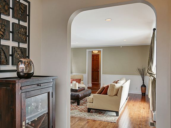 Pristine, move-in ready ranch situated on a tranquil, level lot in wonderful neighborhood near town and schools. Stunning living room and dining rooms include dark hardwood floors, beautiful wood burning fireplace and mantle, custom moldings and charming arch ways. Functional, eat-in kitchen offers ample windows and natural light, center island, recessed lighting and sliding glass door to outdoor patio space. Private, park-like backyard with mature landscaping and patio areas ideal for entertaining. Large, tastefully updated bath featuring double vanity. 3rd bedroom or office w/ decorative exposed brick. Home is assessed as 3 bedroom but third room is utilized mostly as a home office. Easy access to major highways and NYC transit.