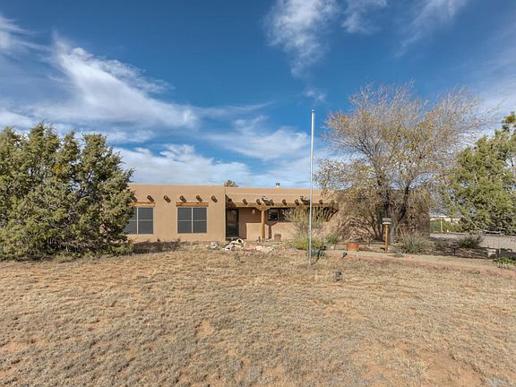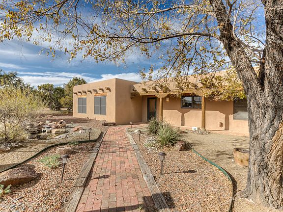 Charming Santa Fe Pueblo style home on 3.7 private wooded acres. Lovely brick path leads you through the beautiful landscaped front yard. Gorgeous southwest finishes throughout the home include gleaming Saltillo tiles, high Viga and T&G ceilings, wood burning Kiva fireplace that heats the whole home, and talavera tiles in the kitchen and bathrooms. Large kitchen with island opens to the living room, perfect for entertaining. Enjoy the covered back patio with beautiful landscaped yard and amazing views of South Mountain. Large updated master suite boasts double sinks and a snail shower. Beautiful outdoor grounds, fenced back yard, and 750sf shop in addition to attached 2 car garage. Radiant heat, NATURAL GAS, refrigerated air and wide hallways/doors.CHECK OUT THE AWESOME VIRTUAL TOUR!