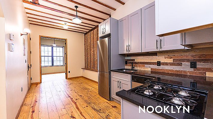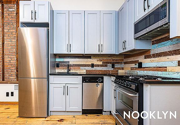Beautiful 4 bedroom, 2.5 bath duplex with a big open basement for recreation purposes. This is a step above the rest! Cool layout and amazing details. Exposed wood beams and brick. Beautiful subway tiles in both bathrooms. Tons of natural light. Stunning kitchen with stainless steel appliances including microwave and dishwasher. Laundry and shared backyard in building. Just off the Jefferson St (L) train. What more could you want! AMENITIES Hardwood floors Stainless Steel Appliances Exposed brick High Ceilings Central A/C Video Intercom Dishwasher Granite countertops Built in microwave Laundry in building Cats ok Small dogs ok Hardwood Floors Duplex Basement Outdoor Space Shared backyard Natural Light in Living Area