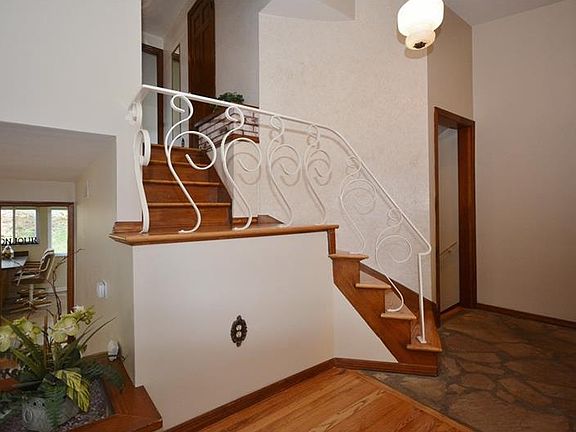 Are you looking for the perfect location in Peters Township? This is it - - just a short walk to the library, middle school, McMurray Town Center, the Montour Trail, and minutes to Route 19! You will love the architectural elements inside, not to mention the beautifully refinished hardwood floors throughout the home. A cozy covered front porch greets your guests and the rustic stone patio flooring is repeated in the foyer. The vaulted ceiling of the foyer and living room provides great volume to the space, and notice the curved wall going up the steps to the second floor and the graceful wrought iron railing! This is a home that works well for entertaining with the living room open wide to the dining room and generously sized stairs that lead to the dining area, which could be used for casual seating too! The fireplace will be cozy during the colder months, and provides visual interest with the floor to ceiling brick surround. Morning light streams in the front of the house through the large front bow window. The updated eat in kitchen has newer appliances and lovely honey maple cabinetry. A bank of windows lets in a ton of afternoon sun and the sliding glass door takes you out to the backyard! The master bedroom is a good size and has a wall of closets for storage. The other 2 bedrooms are nicely sized, have good light from multiple windows and reach in closets. The hall bath has been completely updated and features two separate sinks with granite counter tops to make getting ready a breeze. The ceramic tile complements the granite perfectly. The finished game room will be fun for all! With a nice outdoor space for the summertime - - Is it time to take a look at 208 Stonebrook?