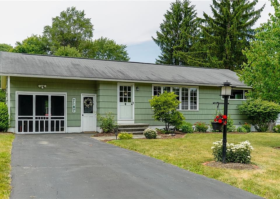 The ranch you've been looking for has finally arrived! Welcome to 208 Stonehedge Rd, centrally located in the heart of Camillus and steps away from the high school! The LOVE and CHARM greets you from the moment you walk in! Enter into the massive living room with a blue stone entryway and white rehabbed built-ins, creating a welcoming feel. The refinished hardwoods throughout the home complement the new wooden clad windows perfectly. An updated kitchen features granite countertops, SS appliances, island, and an eat-in dining area. The large bedrooms offer plenty of space with natural light and beautiful wooden closet doors. An entertainment space in the converted garage works perfectly during the summer and can easily be switched back for our lovely winters. The full basement offers even more room for activities with newly epoxied floors, windows, and electrical. Outside showcases amazing curb appeal with professional landscape surrounding the entire property and a flagstone patio made for smores! Make an appointment and fall in love with this well maintained home today!