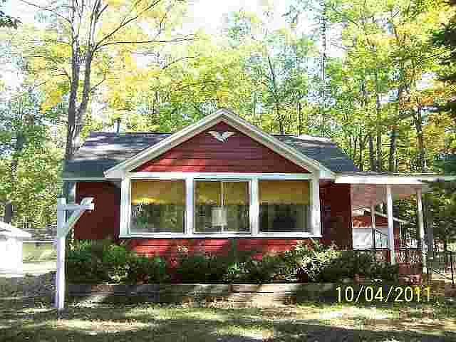 Large wooded lot. Year round home in great condition - oversized garage. Original hardwood floors in bdrms. Natural gas heat. Two porches. Located close to public road-end at lake and to all Houghton Lake businesses.