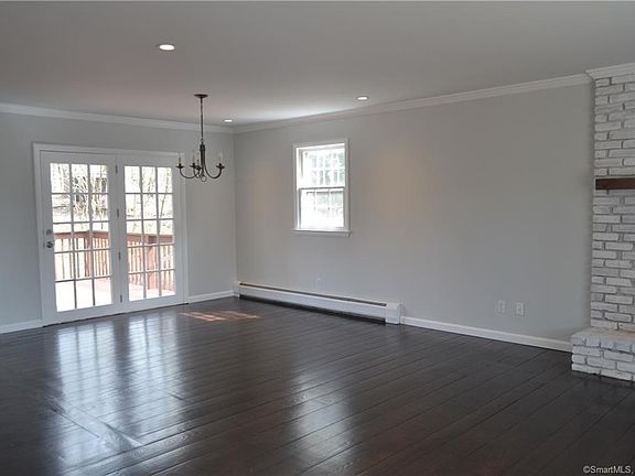 Set back and surrounded by trees, this Ready for Occupancy Ranch is a real delight Lovely, remodeled home. Wait until you open the front door and see this lovely, renovated home. You'll love the open floor plan, and gleaming hardwood floors. Living room features a brick fireplace with new mantel, dining area with sliders to back deck and fully applianced kitchen. There are 3 bedrooms and two full baths, all shiny and bright and ready for occupancy. Interior and exterior has been freshly painted, new light fixtures and doors, lovely crown molding and so much more. The lower level has been nicely finished off as well with new doors and new flooring. There is a 2 car garage and large deck for summer gatherings. Convenient location to schools, highways, shopping areas, our new theater and many conveniences. Easy commute to Hartford, New Haven and New York. An ideal home is ready for you