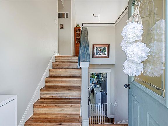 Step into this thoughtfully updated split-level home, featuring modern upgrades and charming details throughout. The main remodel was completed in June 2021, including a beautifully refreshed kitchen with newly painted white cabinetry, sleek stainless steel appliances and farmhouse sink, and a new large butcher block island. The half bath was updated with a new vanity, and the full hallway bathroom was freshly painted during the remodel. Within the last six months, new LVP flooring has been installed in the downstairs living space and all bedrooms.