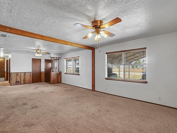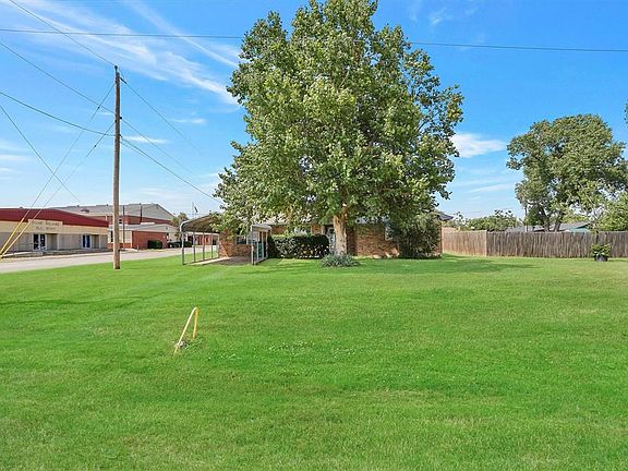 Nice brick home on corner lot has 2 nice sized bedrooms and 2 full bathrooms. The living room is large and opens to the dining area and kitchen. The kitchen features butcher block countertops, a gas stove, and a snack bar. The house has CH&A plus a supplemental heater. The utility room is also large with washer and dryer hookups, 2021 water heater, shelves and cabinets. The backyard is fenced and has a nice large area garden area. The outbuilding has electricity, a cement floor and a small lean-to connected to the building. Seller will have a new roof put on the house prior to closing. Nice house is quiet Southwest Oklahoma town close to Texas border.