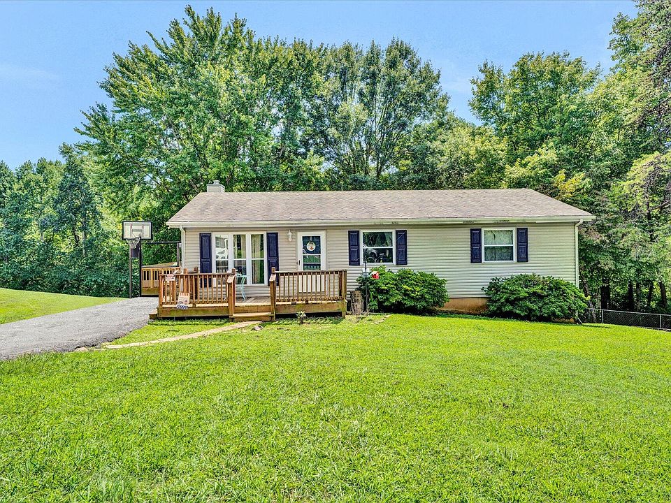 Front entry porch has only 2 steps into this 3 bedroom, 2 bath ranch with full walkout basement - everything you need on 1 floor exc laundry. Level lot-1.14 acres, on quiet cul-de-sac in Bedford County where taxes are affordable & only 10 mins from Vinton Kroger and Bay Rock Marina - for the boater & fisherman in you! Eat-in kitchen w/3 appliances & window over sink, opens to wraparound side & back deck with stairs to mostly fenced rear yard; Master bedroom has a full ensuite bath ((walk-in shower); Lower level has spacious family rm w/bar area & doors to patio & playrm/office/den w/window & closet-both have finished walls & ceiling, concrete floor. Laundry/mechanical rm has a door to rear yard plus a rough-in bath. Vinyl windows, heat pump, hot water tank (2019), Xfinity hi-speed internet