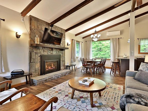 This exceptional 4-bedroom mountain retreat offers the perfect blend of rustic charm and modern comfort. The open concept living area features soaring vaulted ceilings, exposed wooden beams, and a handsome gas fireplace. Whether you're relaxing by the fire or entertaining friends after a day on the slopes, this space is the heart of the home. The well-appointed kitchen boasts granite countertops, stainless appliances, and ample cabinet space. The chalet's layout offers privacy and comfort for everyone. The generous primary bedroom is adjacent to an updated bathroom and just steps away from the main living space. Three bedrooms on the walkout level provide ample space for family or guests. A clever bathroom suite with bookend half bathrooms on either side, offers both privacy and efficiency when bathroom use is in high demand. The expansive deck is perfect for savoring morning coffee or hosting summer barbecues. Embrace the magic of winter by soaking in your private, covered hot tub. Conveniently located minutes from the base of Killington Resort, you'll have quick access to world-class skiing and snowboarding and the renowned après-ski scene, with charming restaurants, boutique shops, and vibrant nightlife just minutes away. This exceptional ski chalet also presents an excellent investment opportunity, with strong rental potential. Don't miss your chance to own this exquisite ski chalet -schedule your private showing today!
