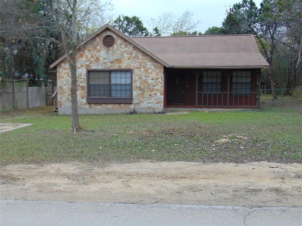 Cute 3 bedroom 2 bath rock home with nice trees. Conveniently located minutes from town. Has a fenced backyard. Workshop & large utility room that could be an office or 4th bedroom. Tenant pay all utilities. No smoking.