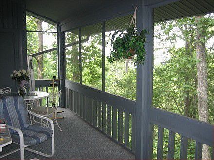 Connestee Falls condo: A well maintained upper end unit with vaulted ceilings,light and bright,large screened porch with view of distant mountains and green area.