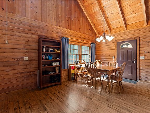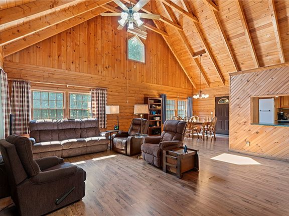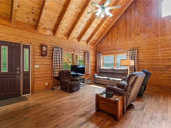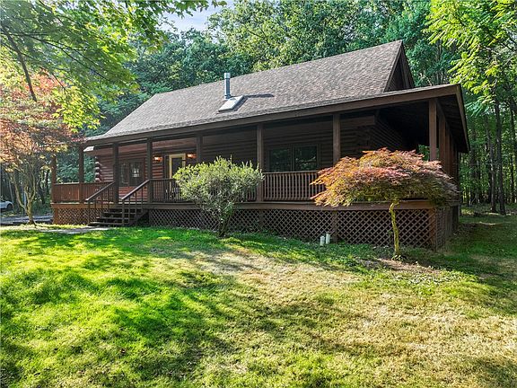 Come enjoy the serenity of a Nature Lover’s Retreat! Log Home nestled in 10 acres of nature’s beauty. Cedar lined walls with a Cathedral ceiling grace this 4 bedroom 4 full bath home. Convenient First floor Owner’s Suite and First floor Laundry. A Cozy Loft overlooks the Open Space Living area. Upper bedroom has an outside balcony for Aerial appreciation of the awesome Views contained on this property. 2 story Stone gas Fireplace for crackling winter fires to enjoy. Plentiful windows provide sun filled lighting. A Covered Wrap-Around-Deck for protection from the weather when relaxing or entertaining. 2 integral garages for convenience and a detached Oversized garage and a Barn for additional parking and storage. Trails are cut through the property for quads and snowmobiles if you desire to move quicker than a leisurely stroll thru the trees. Located in the Heart of Center business district, I 376, the airport and Cranberry are minutes away.