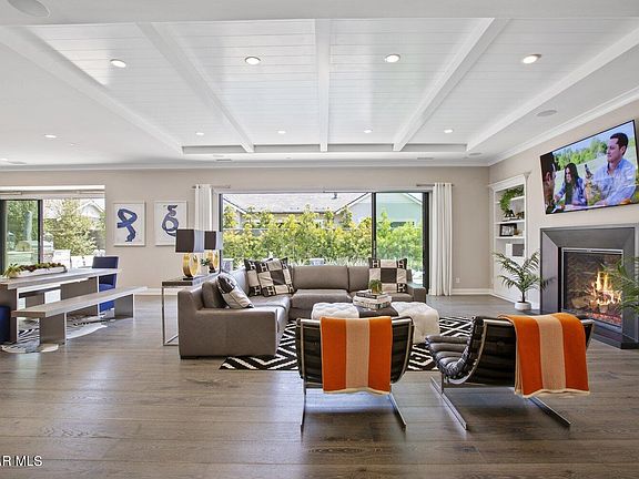 - Built-Ins, Open Floor Plan, High Ceilings (9 Ft+), Coffered Ceiling(s), Paneled Walls