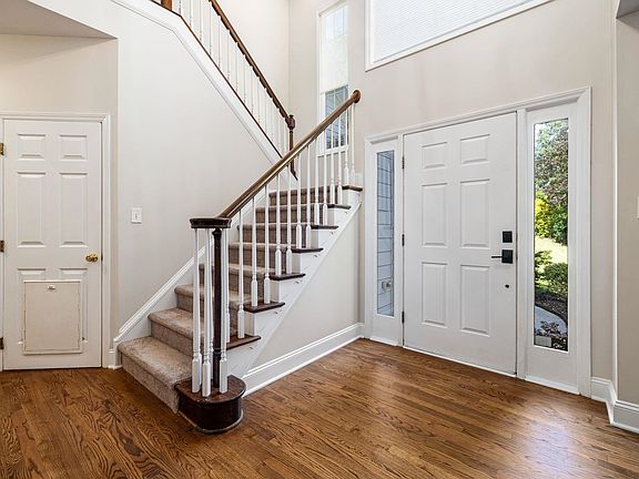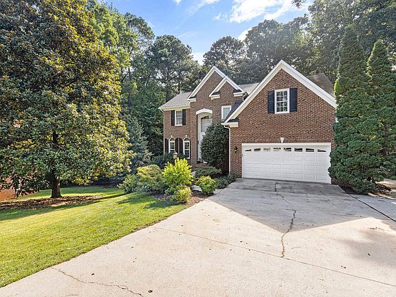 Rare find in Cary! Beautiful brick front 4 bedroom home on 1.39 acre cul-de-sac lot with city water/sewer. 1300+ sq. ft unfinished walk-out basement with a full bathroom rough-in. (no knowledge of permit) Home interior has been freshly painted! Gorgeous, refinished hardwood flooring. New carpet! Large updated kitchen with center island, ss appliances and granite countertops. Spacious primary bedroom has a double tray ceiling and a luxury bathroom with a jacuzzi tub and separate shower. One oversized bedroom can be used as a bonus room! Hall bath offers updated double vanity and recently installed LVP flooring. Screened in porch overlooks a beautiful deep wooded backyard. Easy access to shopping and highways.