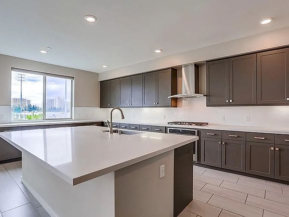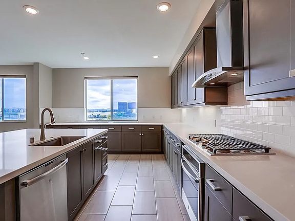 This modern 3-bedroom, 3-bathroom condo is ideally situated in the heart of Irvine's business district, offering both convenience and luxury. Built in 2019, the unit boasts a contemporary design with numerous upgrades throughout. Each of the spacious bedrooms features its own private bathroom, providing added privacy and comfort. The chef's kitchen is a standout, with ample counter space, a gas stove, plentiful storage, and a large quartz island perfect for meal prep or casual dining. The open-concept dining and living areas flow seamlessly, creating an inviting space for both relaxation and entertaining. The condo comes fully equipped with essential appliances, including a refrigerator, microwave, dishwasher, oven, and a side-by-side washer and dryer. Located on the 3rd floor with elevator access, the unit includes a private 2-car garage on the first floor for secure parking. Enjoy the convenience of nearby dining, shopping, and easy access to major freeways (405 & 55). John Wayne Airport is just a short drive away, and Newport Beach is only 15 minutes from your doorstep. The community offers resort-style amenities, including two swimming pools and a large commercial-grade fitness center. Important Parking Note: The detached 2-car garage is exclusively for tenant use. Additional street parking is reserved for guests only, so tenants with more than two cars will need to make alternate arrangements. Lease Term: 1 Year Landlord will pay for: HOA Tenant will pay for: Electricity, Water, Trash, Gas, Internet Lease Start: As of now unit is going to be available on March 17th but if tenant requires lease to start sooner, that can be arranged.