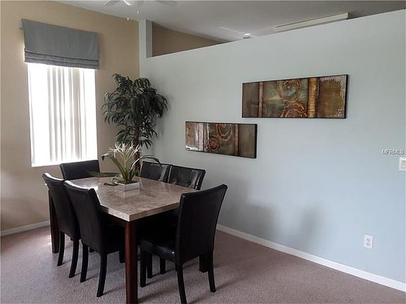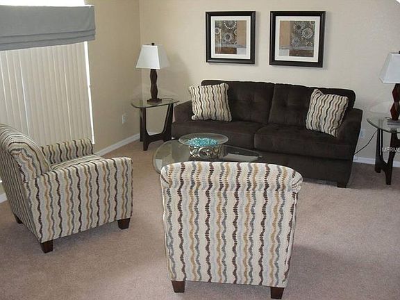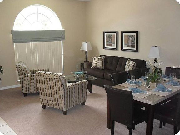 It's not surprising to know that a professional interior designer was used to design and furnish this beautiful home, right down to the artwork on the walls of Scottish Golf Courses in keeping with the vision of the community. Move in ready, with Leather Sofas, HDTV's Luxury Bedding and much, much more, and it already has bookings in place as it's a very, very popular vacation/holiday rental home, it generated over $24K last year. This home is perfect for the short term rental market; it's the perfect size, perfect location and the perfect position, backing south ensuring full sun all day long on the huge pool deck and private pool! And for the not so sunny days, the garage is fitted out as a games room with a pool table, and foosball, so no excuses to be bored in this home. It would also make the perfect residential property, close to all the major roads to get to work easy, Interstate 4, HWY27, SR429, shopping, and restaurants are all within minutes of this great home. A warm and inviting formal living room/dining room greets you as you enter, and leads through to the kitchen/family room which overlooks the pool deck through large sliding glass doors, making this home light and bright. A split floor plan, with a large master bedroom on one side of the house, and all the guest bedrooms on the other. The kitchen has lots of cabinets and a huge pantry, with a cute eat in area for breakfast. Plus a brand new A/C Unit installed recently.