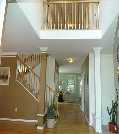 Classic Briddell Kingsbridge on premium cul-de-sac lot backs to woods w/2 MASTER SUITES - one on the main level (handicapped access) could be used as In-law. Dual staircases, open floor plan includes main level study. Screened in porch. Some wood floors. W/O level bsmt w/4 full sized windows and full bath. $3500 carpet allowance, HMS warranty. 2920 SF ABOVE GRADE, tax records are incorrect.