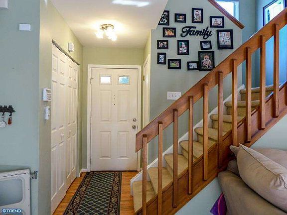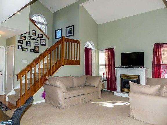 Premiere lot space! 2 bed, 1.5 bath home backs up to wooded land owned by Boro. New insulation, siding & gutters installed 2 years ago. Other exterior features include expanded driveway, fenced yard, storage shed, and large rear deck. Enter foyer and notice 2-story living room complete with ceiling fan and gas fireplace. Dining room offers a bay window and sliding glass doors that lead to large rear deck - perfect for entertaining with an ease of serving. Kitchen with ample counter and cabinet space is an added bonus! Notice the windows throughout, providing an abundance of natural sunlight. A family room with bay window and crown molding, powder room, and laundry area complete the first floor. The lofted second floor offers two bedrooms and a full bath. Master bedroom includes dressing area and walk-in closet. Second bedroom complete with chair rail. Both bedrooms are nicely sized with ceiling fans. Charming home awaiting new owners - show today!