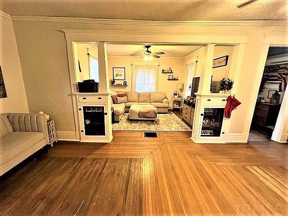 Are you looking for small town living just minutes from Lafayette? You do not want to miss this historic home that has been kept in pristine condition! From the charming built ins, unique hinges on the doors, lead glass doors, original millwork and unique features, all these details make this house a HOME. Step inside the adorable foyer from the amazing front porch and you're met with an open concept living area that flows into the dining room and laundry room. Off the dining room you'll find an updated kitchen with lots of natural light which opens up to the picturesque back porch with swing! The character of this home continues upstairs to 3 bedrooms, a den/office and updated full bathroom. The closet in the middle bedroom continues through to the Primary Bedroom, another unique feature! The unfinished partial basement is dry and spacious!