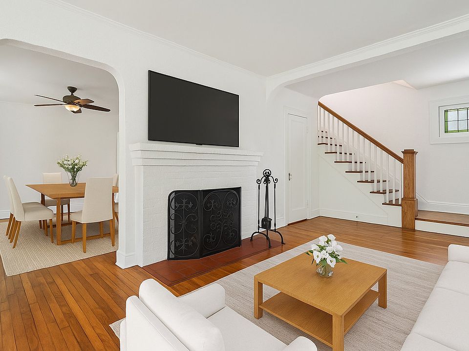 Private backyardPartially finished basementStately brick tudorBeautifully renovated kitchenGleaming hardwood floorsFour generously sized bedrooms
