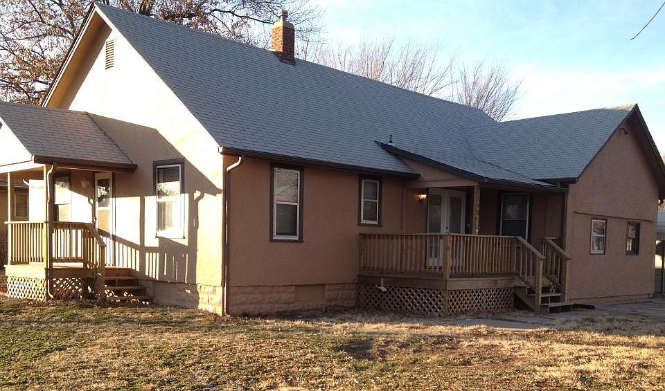Small town living only 10 minutes from Wichita. Walking distance from school, parks, restaurants, and grocery store. This home has several updates including kitchen and bath. Central heating and A/C is newer as well. Large mud room with laundry hook ups. There is a large unfinished basement with tons of room for storage. Pets can be considered on a base to base case. Available Now! All utilities paid by tenant. Pets may be considered with additional pet deposit.