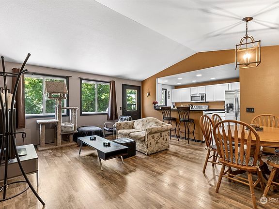 Wonderfully cared for 3 bed, 2 bath home in a great neighborhood! This 1125 sqft home features an open concept living room and kitchen, primary bedroom with bathroom, laminate floors and carpet, stainless steel appliances, and forced air heating. Enjoy relaxing and entertaining on the back deck, fully fenced back yard, fruit trees and garden space. 2 car garage for vehicles or space for working on projects. Great location close to schools and quick access to downtown Ellensburg and other amenities!