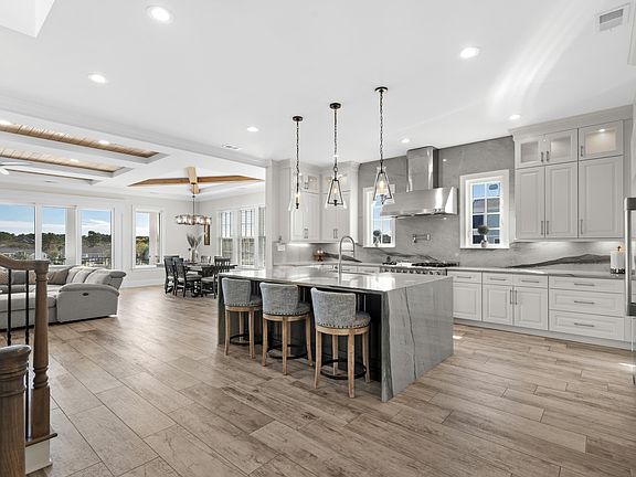 Let me introduce you to this stunning, custom raised beach home located in the desirable , gated Waterway Palms Plantation community. The home will greet you with a nice foyer, a guest bedroom and a bathroom right of that, Vintage series porcelain tile flooring in the living areas, rounder corners and crown molding throughout. As you transition into the living room you will be taken away by the open living concept with the most breathtaking views of the Intracoastal waterway. The state of an art kitchen has THOR appliances, installed pot filler, commercial grade hood, commercial size refrigerator, nice size gas stove, most elegant waterfall island and countertops made of rare Aurora White Quartzite, Aurora White Quartzite backsplash reaching to the ceilings, soft close cabinets with recess lights, built-in microwave, walk - in pantry with cabinets for extra storage. One of the favorite places of the home is bright and airy living room with a built-in fireplace, floating shelves, stained pine ceilings, beam ceiling in the dinning room with a gorgeous chandelier, and did I mention a bar area with a Thor cooler, access to a nice size balcony where you will never get tired of watching boats going by and golf course views. As you proceed to a second floor through a most elegant staircase with wood stained floors and walls covered in custom panels you will arrive to the second floor of the home owners suite being generous size, office nook with beautiful water views, French doors leading to a balcony with water views where you can enjoy your morning coffee, an absolutely beautiful owners bathroom with imported Exotic stone Lagoon tiles, double sinks, tub, and a must see shower has two entrances on each side with double shower heads, walk-in master closet with custom shelves, there are three other bedrooms on the second floor with one bedroom having en -suite bathroom, and two other bedrooms sharing a bathroom and the laundry room with a sink and cabinets, central vacuum. As you go down the elevator to the lower level you will find a mother-in-law suite with a bedroom and a en-suite bathroom, a living room, kitchenette, THOR appliances, a half bathroom with easy access to the pool area. Enjoy your fenced in backyard with a turf grass, a private saltwater pool, with outdoor golf one pot golf course, outdoor kitchen with a gas grill, and of course let’s not forget the space for your boat as it comes with it’s own boat dock, nice size garage with built-in cabinets, and a storage room that can be turned into a workshop. Do not wait to call this absolutely turn key home yours.