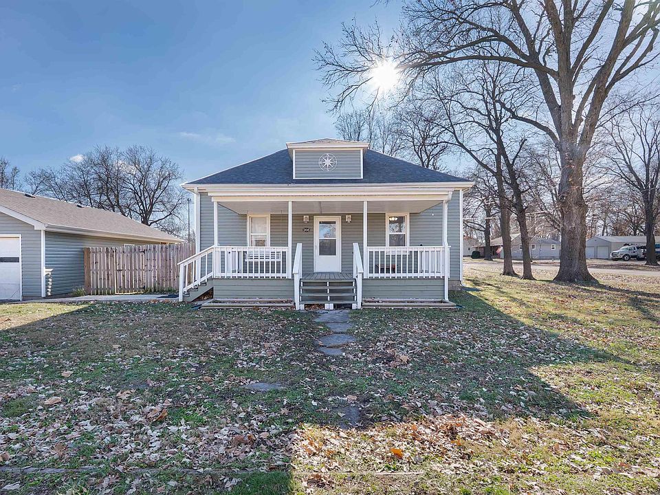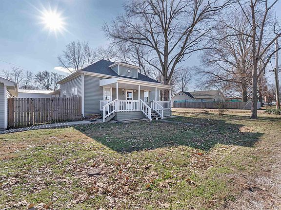 Welcome home to this charming 3-bedroom ranch nestled in a peaceful small town, just a short drive to all the restaurants and shopping in Sedalia. This well-kept property features both a covered front porch and a covered side deck overlooking your private yard, offering great spaces to relax and unwind. Inside, you'll find a spacious kitchen, a dedicated dining room, and a walk-in closet for added convenience. The home sits on a corner lot in a quiet neighborhood with small-town comfort. Outside, enjoy an extra-deep 2-car detached garage, perfect for parking and storage, along with an additional storage shed for tools and equipment. The location is ideal—within walking distance to the school and park and close to the Katy Trail for biking and outdoor recreation. Many updates include roof, gutters and siding in '21, heat pump '24, and privacy fence '21. This inviting home offers comfort, convenience, and charm—don’t miss your chance to make it yours!