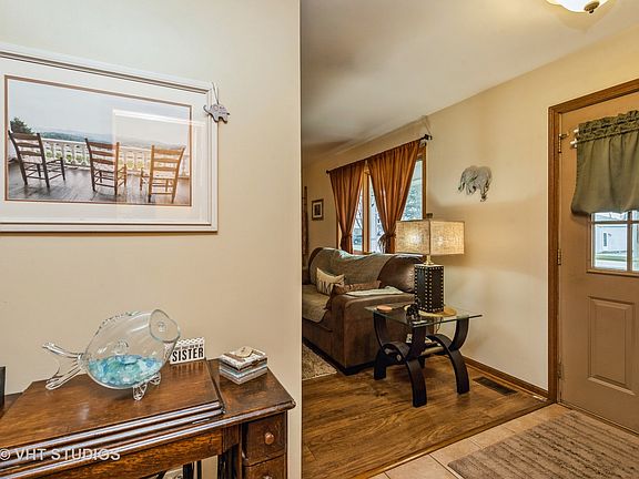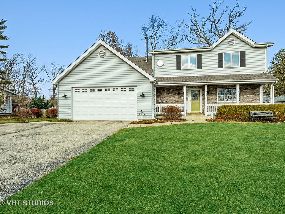 Bring your boat and cars because this house has it all! This property includes 3 lots and is over a 1/2 acre combined. The house sits on a double lot and the garage another lot. The property includes a beautiful 2 story house and a Chain of Lakes waterfront lot across the street with access to Pistakee Lake and a 2 1/2 car garage. Its a deep channel with plenty of room for a larger sized boat. This spacious 2 story house features wood laminate flooring and 6 panel doors on the first floor. The large kitchen opens up to the family room with wood burning fireplace and French Doors leading out to the double tiered no maintenance composite decking and fenced in spacious backyard. The roomy primary bedroom has vaulted ceilings and skylights as well as a balcony overlooking the peaceful fenced in yard. The primary bathroom has a large vanity and shower. Plenty of storage in the upstairs with walk in closets in each bedroom. The newly remodeled 2023 upstairs bathroom has new vanity, sink, faucet, tile and bathtub. There is a 2 1/2 attached garage as well as another 2 1/2 car garage on the lot across the street. Both are heated, insulated, drywalled and have concrete flooring. The separate garage sits on a waterfront channel lot with large maintenance free composite decking as well as a sitting patio area with canopy gazebo. Most of the house was remodeled or replaced 10 years of less. Roof 2016, microwave 2021, dryer 2020. Award Winning Johnsburg Schools! The house comes with a year Home Warranty.