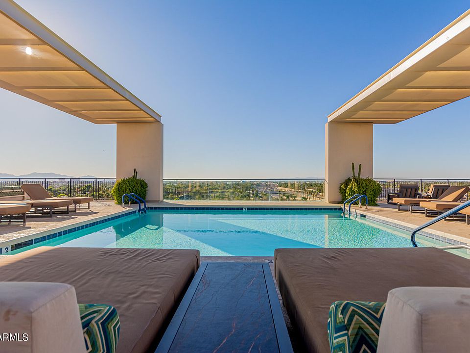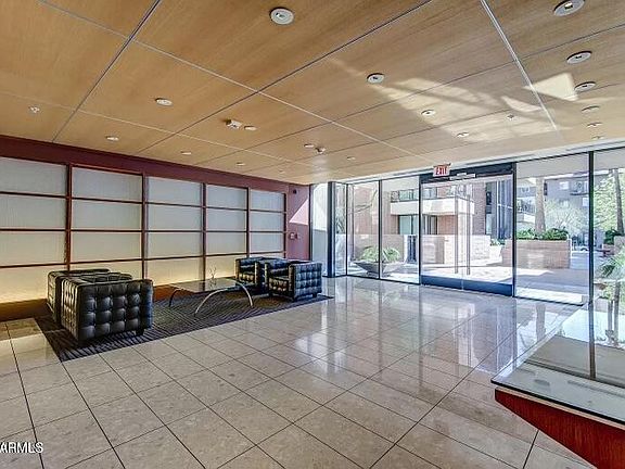 Great opportunity to own a property in the highly sought after Portland Place Condo Community! Situated in a prime Downtown Phoenix location providing unparalleled convenience & access to the city's vibrant offerings. Discover a testament to modern living w/a spacious floor plan highlighted by soaring ceilings, floor-to-ceiling windows, & beautiful tile floors throughout. The kitchen is a cook's delight, featuring SS appliances, gas cooktop & a wall oven. Granite tile counters, wood shaker cabinetry, stylish tile backsplash, recessed lighting, a walk-in pantry, & a breakfast bar elevate the space. Primary retreat is a haven of comfort with a full bathroom, a walk-in closet, & patio access. The sizable back patio w/pavers underfoot promises serene mornings. Unit is steps away from garage Room darkening window treatments stay with the home. Inside laundry area off of kitchen along with half bath.