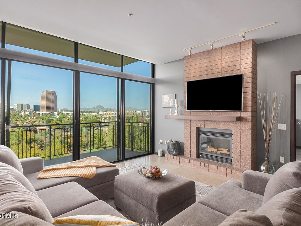 Luxurious Portland Place condo with stunning views now available! Located in the heart of Phoenix on coveted Portland Park! This special unit is located on the TOP FLOOR overlooking the Japanese Friendship Garden & includes TWO UNDERGROUND PARKING SPACES. Open floor plan features 2 bed, 2.5 bath w/high ceilings, panoramic windows, brick fireplace, powder bath & laundry room. The luxurious kitchen offers wood cabinetry, granite counters, wall oven, new SS fridge and a huge island/breakfast bar. Each bedroom in this double ensuite plan has a luxurious private bath and custom walk-in closet. Amenities include include ROOFTOP POOL, BBQ grills, comfy seating areas & workout room! Walk your dog to Hance Park, hang out at Burton Barr library, or stroll over to Roosevelt Row and enjoy your life!