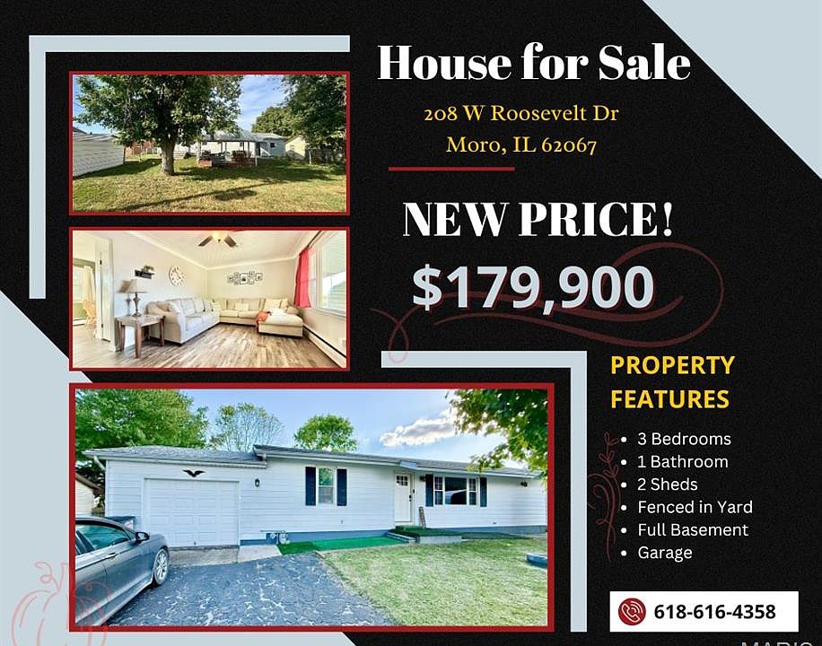 * PRICE IMPROVEMENT * SUPER-CUTE (3) bedroom (1) bath in Bethalto School District. Within the last 3 years home has had new flooring installed throughout, fresh paint in all room, newer kitchen cabinets, New Central Air (was using window units) and duct work, and new windows in the Dining Room and 1 bedroom. Plenty of room in the nice sized back yard including a deck, a covered patio and 2 sheds. Back yard backs up to farm land and farm land in the front across the street, leaving a nice open view. Call today to make your appointment. Earnest money to be made out to Serenity Title in Bethalto. Buyer and Buyers Agent should verify all MLS Information. Refrigerator in Kitchen, washer, dryer, and Deep Freezer in Garage are not included.
