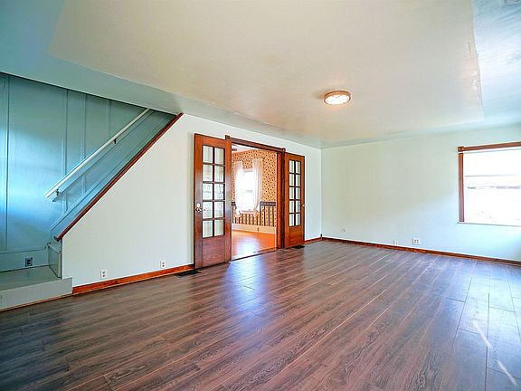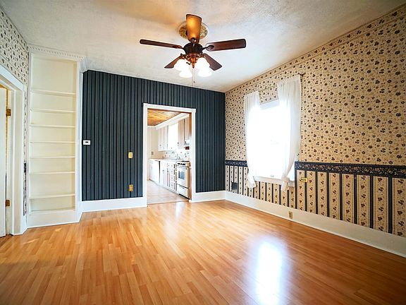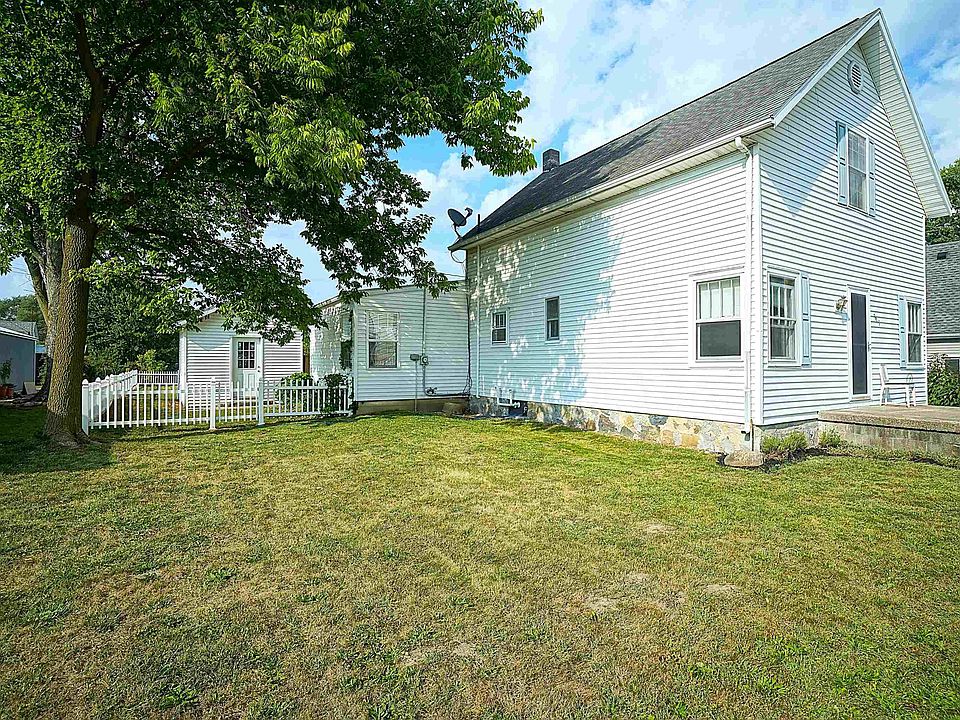 Recently updated and ready to move into 3 possible 4 bedroom, 1 bathroom, 1727 sq. ft. home with a fenced in backyard, 2 storage buildings and an additional 132'x66' lot for your future needs. Front porch entry brings you into the generous sized living room that connects to the dining room/family room just off the large and possible eat in kitchen with pantry, plenty of storage, and knotty pine ceiling. The laundry room (with washer & gas dryer), full bathroom and 1 bedroom complete the main level. Upstairs you'll find a bedroom with a large walk-in closet and a combination room that could easily be used as 2 bedrooms. A large storage closet completes the upstairs. The partial basement is home to the HI-Efficient GFA Furnace and Tankless hot water heater. "NEWS" include: 2024 Gas tankless hot water heater, Deck, some Plumbing and Electrical upgrades, Flat Roof; 2020 - Central A/C, Vinyl laminate flooring; 2011 Hi-Efficient GFA Furnace. Call Josh or Steve for your private tour.