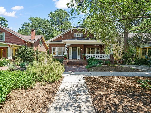 This renovated 1920s Old North Durham light-filled bungalow is sure to charm! The four-over-one windows, original door with transoms, craftsman-style columns, the Southern Star-type balustrades and the raked bricks with fun laying patterns around the house reflect the joy exuded in this home's history. Inside boasts lovely hardwood floors, high ceilings, glass doorknobs, a French door, thick moldings and plaster walls. Enjoy the spacious updated kitchen and the stunning renovated tiled bathroom with heated floors, and renovated windows with copper chain replacing the old rope cords. Enjoy easy living using a rare, dedicated laundry/art space with lots of cabinets and an extra dishwasher. A gorgeous wide hall furthers the sense of spaciousness. The living room and dining rooms can be closed off from the rest of the house for noise reduction or privacy. The peaceful back bedroom or office feels like you're in a tree house. And over 1600sq ft of basement offers a tremendous amount of storage (window screens are there and landscaping tools, bikes, etc. used to be). A large portion of the space was floored and partially framed (no sheetrock) with electrical outlets and was used both as a workshop and band rehearsal on a concrete stage. Access to the basement is both through a hallway door inside the house and through an exterior door in the back. A deep fenced-in backyard lets Fido get his zoomies out while you sit in the shade of the covered patio or get some sun in relaxing on the pebbled patio. Park in the carport off the alley or in the driveway in front of the home. Traffic on this block of West Trinity is calmed by a roundabout 3 doors down. When swinging on the front porch looking down at the gorgeous tree-lined street enjoyed by many generations, you may forget that you're only 4.5 blocks to the many activities Downtown Durham offers these days. Run into your neighbors at the Farmer's Market, melt over the crepes at Press, throw some pottery at the Durham Arts Council, grab a pizza at Hutchins Garage, head to a Bulls game or to DPAC, and have a drink at Full Steam on the way home. You name it. Many of the non-glamourous things have been done recently: new roof with architectural shingles; foundation work recommended by Piedmont Engineering; and new sewer, main, and drain lines all installed in 2018. New Bosch HVAC/AC heat pump and bathroom renovation in 2021. In 2024 Kitchen update with new soft-close cabinets, quartz countertops, and new stainless appliances: Back steps were rebuilt; and the house was painted inside and out. This updated low-maintenance home lets you enjoy the things you love to do hanging at home or quickly get out on the town.