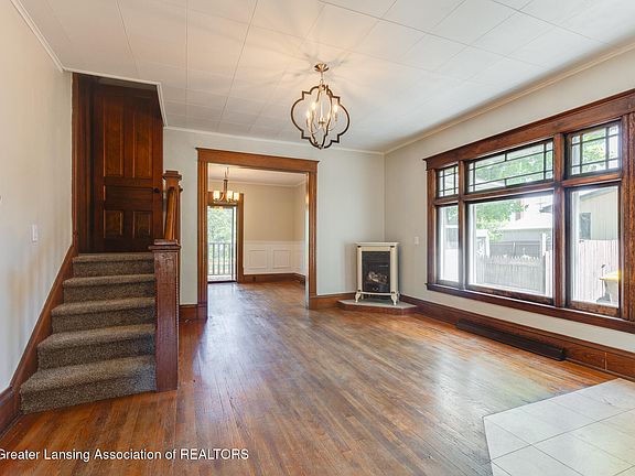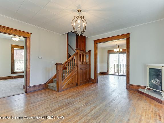 Welcome to 208 W Walker Street in St. Johns, a beautifully updated home that blends charming character with thoughtful modern upgrades throughout. Step onto the inviting front porch with brand new outdoor carpeting, or relax on the freshly stained back deck with new stairs. Inside, nearly every room has been refreshed with new drywall, paint, lighting, flooring, and fixtures. The home features two living areas, including a parlor with recessed lighting and new carpet, and a versatile entrance room with fresh paint and new tile on the hearth. The dining room adds elegance with panel moulding and a new light fixture. The kitchen is a standout with new LifeProof vinyl flooring, granite tile countertops, tile backsplash, a built-in coffee bar, and all new appliances including a range hood, refrigerator, and dishwasher. The first-floor bedroom and bathroom have been completely remodeled, featuring a new steel bathtub, pedestal sink, tile surround, and updated lighting and finishes. The sunroom offers five new windows, new baseboard heat, and is perfect for year-round use. Upstairs, you'll find new carpet throughout, a cozy landing/study nook, and a refreshed half bath including new tile flooring. Two additional bedrooms have been updated top-to-bottom, with features like cathedral ceilings, new windows, and custom lighting. Exterior highlights include a shed with a new roof and major infrastructure updates: a new sanitary sewer line and water lead installed in 2021. This home offers move-in-ready comfort with modern style and peace of mind.