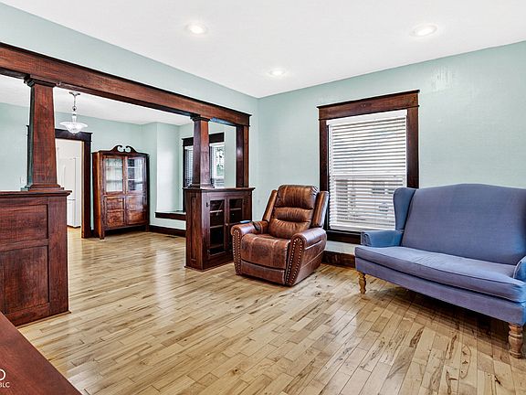 Charming 3 bedroom, 1 bath bungalow located in a small-town setting. Home features original woodwork with built-ins, hardwood floors, formal dining room, updated kitchen and bath, and fresh paint inside and out. Partial basement provides additional storage. Enjoy the covered front porch and back deck for outdoor living. Property includes a 2-car detached garage with an upstairs finished room perfect for crafts, hobbies, or a quiet retreat.
