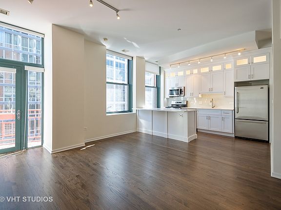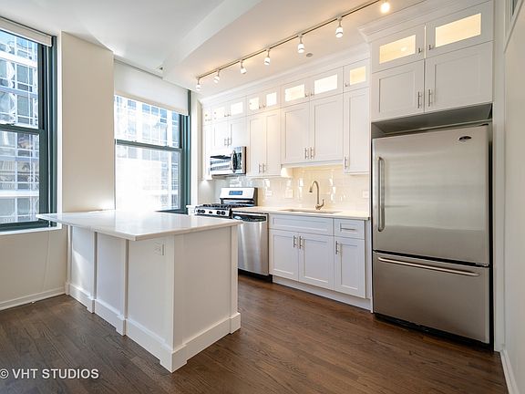 Beautifully remodeled two bedroom/two bath open floor plan in the heart of downtown with breathtaking views! Kitchen, bathrooms, and hardwood floors have been redone. Kitchen features Quartz counter tops, SS Appliances, and white cabinets with built-in lighting and lots of storage. Two large enclosed bedrooms with beautiful glass and ample closet space. New hardwood floors, stone fireplace, washer/dryer in the unit, and balcony with city & lake views. Full amenity building with 24/7 doorman, fitness center, roof deck, business center, bike room, storage, and on-site management. Walk Everywhere: River walk, millennium park, financial district, transportation, restaurants, night-life, West Loop, and anywhere in the loop. Urban living at its finest!