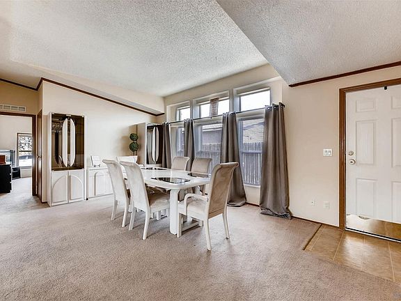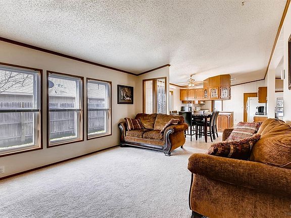This is a very spacious home with 4 bedrooms, 2 full baths, kitchen, dining area, flex space that could be used for family room or formal dining, living room and a laundry room. The kitchen has a built in desk area, an island and a pantry. This home has a fenced in private yard with a garden area, storage shed and sprinkler system. It is close to I-76, King Soopers, Elementary school.