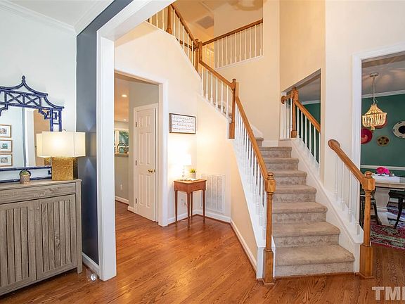 Don't miss this Opportunity in Devereaux! Brick front charmer on LARGE, private, cul-de-sac lot with Community lake view! Grand 2 story foyer and site finished hardwoods. Plenty of space w/ open concept family and renovated kitchen/bright breakfast rm addition w/upgraded finishes. Spacious master suite with dual vanities, garden tub and cedar-lined master closet! 4th bedroom can double as a large BONUS. Relax on your private deck in quiet oasis steps away from HOA pool. Conv to Apex/Cary/Hwy64/55 and 540!
