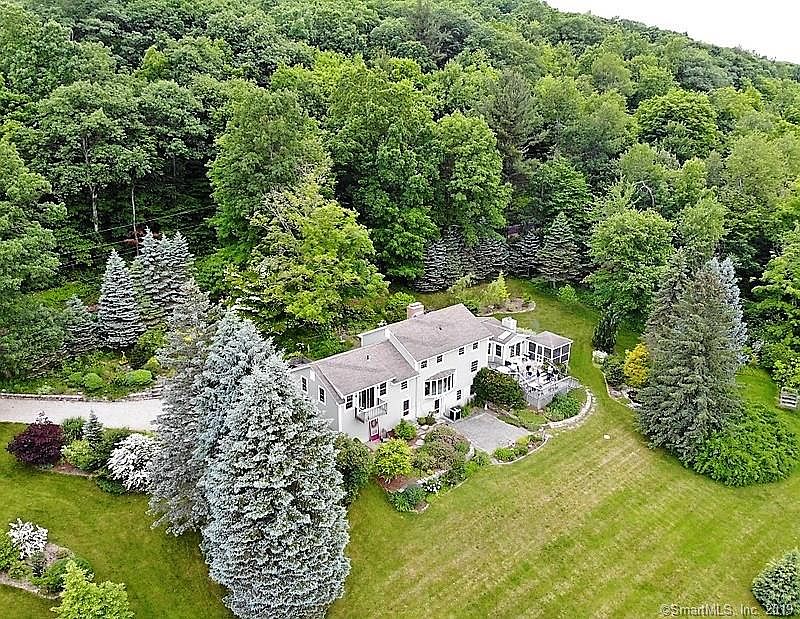 This amazing property has it all The views of the Farmington Valley are spectacular from inside the home and outside Wake up to the sunrise with coffee on your master bedroom balcony or star gaze at night with a glass of wine. The property is professionally landscaped with a wide array of ornamental shrubs, blueberry bushes, vegetable gardens, stone walls, and perennial beds. There is small fish pond with water fall and a large spring fed pond with a fountain. The pond is great for ice skating and hockey games in the winter and you can stay warm by the large stone fire pit. There is nothing like listening to the pond fountain on a warm summer day. The 2.7 acres has paths for walking, snowshoeing and cross country skiing. Enjoy the wild life and nature There are 3 outdoor living spaces which include a screen porch, a large deck and stone patio. All with views The unique layout of this 4 bedroom home with an open floor plan, is well suited for entertaining. The kitchen and family room are combined and open to the porch and deck. There are 2 fireplaces and a brick pizza oven. The walkout lower level is a perfect playroom, office, gym,or crafts room. There is a small office space on 2nd floor as well. For those who want a first floor master in this unique colonial there are only a few steps up to master bedroom suite.