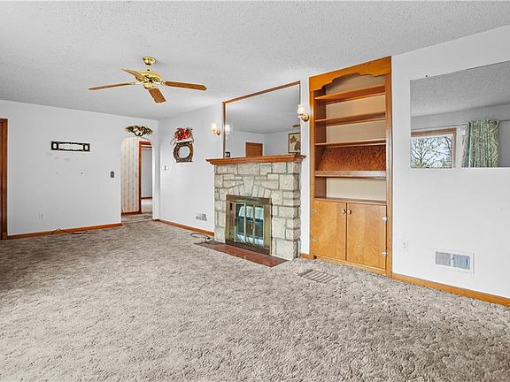 Put your own special touches on this spacious Ranch on half acre lot, just minutes from the historic Elms Hotel. So much potential here. Entry opens to living room with fireplace. Three bedrooms on main floor. Nice sized kitchen has moveable island & lots of cabinet space. Family room with gorgeous pine paneling & built-ins. Large laundry room w/built in drawers and shelving could also be a craft room & has adjoining full bath. Finished basement with wood burning stove + storage area/workshop with stainless steel sink. New roof, a/c and vinyl siding in 2021. Fenced back yard w/shade trees & plenty of room for a garden, + huge patio great for cookouts or just relaxing. Some basement work has been done (see receipts in documents). Home is being sold "as is" but seller will provide a 1 year home warranty. New main sewer line just installed.