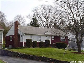 Bright 3 bedroom 1.5 bath ranch home with hardwood floors thoughout, a wood burning fireplace, a partially finished lower level, central air and a one car garage. It is located conveniently to bus lines and shopping areas. A little updating and this will be a sweet house. Very private back yard.