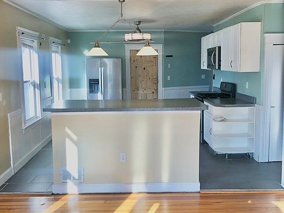 Commuter Special! About 1/2 mile from MBTA Montello Commuter rail bus/station. Large bedrooms, updated kitchen with stainless steel appliances including a 5-burner gas stove and newer cabinets. Lots of cabinets! Large pantry with shelving and drawers. Recently updated bathroom as well. Hardwood floor throughout. Open concept kitchen, dining island and living room. Newer windows and lots of natural sunlight. Partially finished attic for storage, office, or bonus space. Off street parking. Front and back porches to sit and relax. Public park, shops, restaurants and stores all very close by.