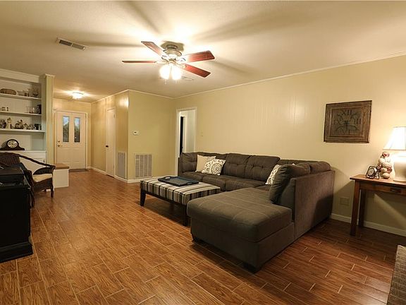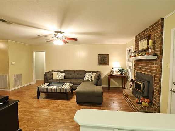 Lots of upgrades! Great use of space. Split bedroom floor plan. Architectural shingles. Porcelain tile wood plank floors. Granite counter tops in the kitchen. Kitchen completely remodeled. Upgraded microwave, dishwasher, refrigerator, and stove. HVAC updated (Air Handler and Ductwork). Southern Air services the unit. Water heater changed out recently. Fireplace insert is wood burning. Wallpaper removed throughout and walls painted. Concrete basketball court on right side of house. Property under termite contract with Duncan's Pest Control. Lawn lamp in front yard is on a timer. A great place to call home! Move in and arrange your furniture.