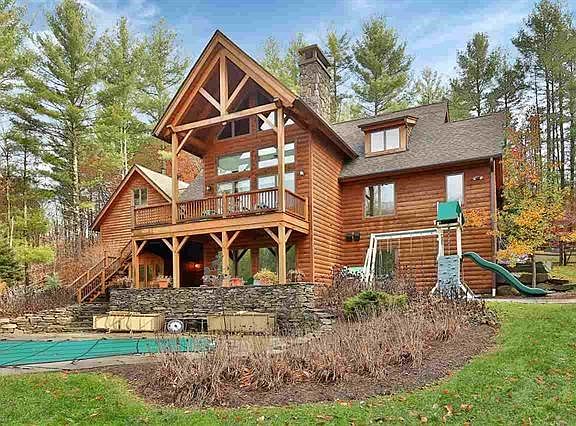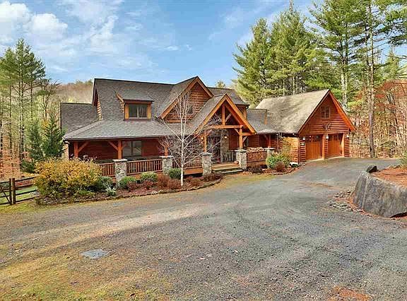 This timber frame masterpiece sits on 8 acres in a private, gated community. Breathtaking architecture, carvings, soaring ceilings, high-end appliances, picturesque back yard, sauna, and in-ground pool are sure to please the family seeking a get-a-way. Home features tongue and groove ceilings, exposed beams, granite counters, 5" cedar log trim throughout, custom carvings, stone and slate tile, state of the art detection (security) system and audio system both inside and out. Located at the Chapin Estate, a 4-season gated residential preserve tucked discretely amidst 2500 +/- acres of pristine forest lands and bordering 14,000 acres of protected conservation lands.