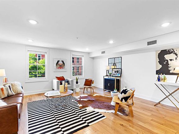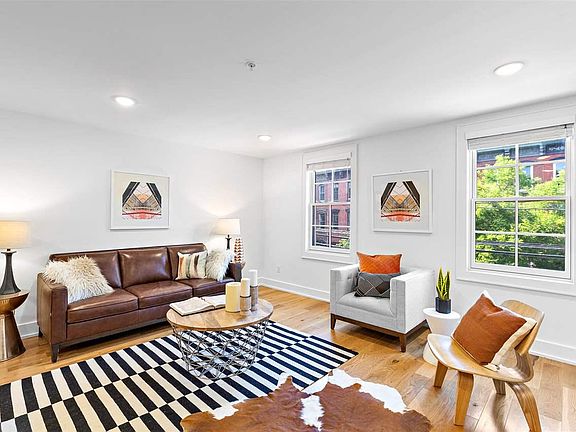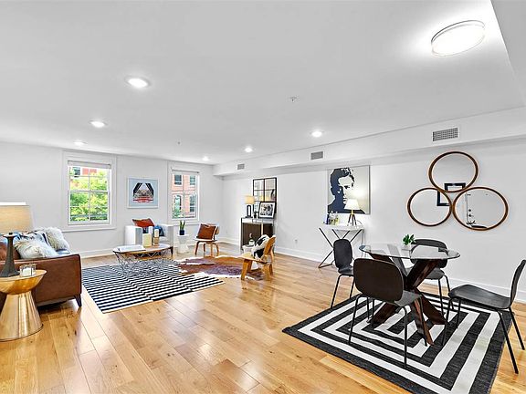 Find your oasis in this stunning Jersey City condo that features exquisite exterior finish of Cedar and Hardie plank and boasts an 11x14 private storage space on the ground level with the perfect convenience to satisfy all of your storage needs. This 2 bed/2 bath plus 1 den home is a full-suite of high-end stainless steel appliances, sweeping oak floors, a modern and elegant open-concept kitchen with quartz countertops, modern Bosch kitchen appliances and Fisher Paykel refrigerator accompanied by the perfect kitchen island and bartop to entertain guests or enjoy a brightly-lit dining experience. Each bedroom offers a sun-drenched open floor plan with ample closet space! Enjoy two bathrooms adorned in statuary marble and Italian porcelain with built-in storage, serving as luxurious additions to this beautiful home. Exceptionally located a short distance form convenient transportation options, such as the Marin Boulevard Light Rail and Grove Street PATH stations; PS16 School ZONE, just minutes from the historic Van Vorst Park, where you can freely walk and explore the community gardens farmer's market with your friends, family and pets. Easy grocery shopping at the brand new Whole Foods! Nighttime and weekend adventures offer both eclectic and homemade dining options within a couple minute's walk. Discover your dream home today!