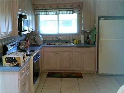 Roof-less than 1 year old, 2 shylights in living room, central air, remodelled kitchen & bath, tile floor in kitchen & dining, front porch, covered patio in back, 2 car garage with opener,built-in cabinets in 1 bedroom, ceiling fans, 4 fruit trees(orange), newer windows & slider,