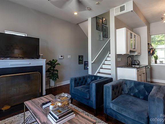 Welcome to the heart of Dilworth and Southend! Fully updated townhone style condo with views of uptown and southend. Updated white kitchen with granite and stainless steel, gas fireplace in living room, wood floors and tall ceilings. Primary bedroom on top floor with updated bathroom and plenty of closet space. Lower walkout level is used as bedroom, office, or den. Perfect setup for roommate situation. Amazing rooftop deck with corner views overlooking Dilworth and uptown. Plenty of parking, but convenient to it all. Don't miss this one! Low HOA covers water and sewer. Showings start Thursday 4/20