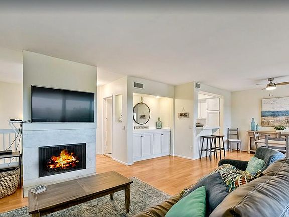 California coastal lifestyle, across the street from Torrey Pines Beach Del Mar. Steps from stunning Torrey Pines Beach! This lovely townhouse is perfect for short term corporate relocation, contractors or employees who can work from home. Anyone who is on short term assignment. Live steps from the beach while your home is being remodeled. Get away from the heat or winter snow.... The townhouse is available for the period of January 2023 to May 2023. If you can work from anywhere, why not stay in sunny San Diego? Just minutes from world-famous Torrey Pines Golf Course and nature preserve, this bright and airy, FURNISHED 2 Bedroom, 2.5 Bathroom home will help make your stay unforgettable. (See VRBO listing ID # 1130167 to read reviews) For outdoor enthusiasts, you'll never have to get in your car to access the beach, unique walking trails, or the popular coastal cycling routes. If you're looking for a tranquil and fun-filled getaway, this is the perfect place. This relaxing and coastal casual townhouse is less than 80 yards from the entrance to the iconic Torrey Pines State Beach, and an easy walk to the lagoon, local restaurants and convenience store. Situated in the beautifully landscaped Sea Point community with amenities galore, this complex includes, 2 pools, 2 jacuzzis, 2 tennis courts, sand volleyball court, a playground, clubhouse, recreation room and 5 acre private park all available for you during your stay. The private, attached, 2-car garage provides easy, direct access and lots of space, and eliminates the need for street parking. It is a 2 level unit, has no neighbors above or below, a balcony off the living area perfect for people-watching, plus completely private, front and back patio areas. A/C, an open fully-equipped kitchen, dining area and living room make entertaining a breeze. The lounge area with couch, Ultra-HD Smart TV and Wi-Fi. Bedrooms include all new mattresses, 1 king, 2 twins and a twin day-bed with trundle. We are less than 5 minutes from the Del Mar Race track, 10 minutes from beautiful La Jolla, and 30 to 40 minutes from downtown, Legoland, Sea World, and San Diego's world-famous Zoo and Wild Animal Park and less than 90 minutes from Disneyland. We love this special location for being so close to the ocean and the beauty you can find in sunset walks on the beach every evening. No smoking allowed. No pets allowed. Available for short term (30 days) stay and long term stay beginning January 2023 to May 2023, Security deposit applies to longer term lease. Tenant covers electrical/gas